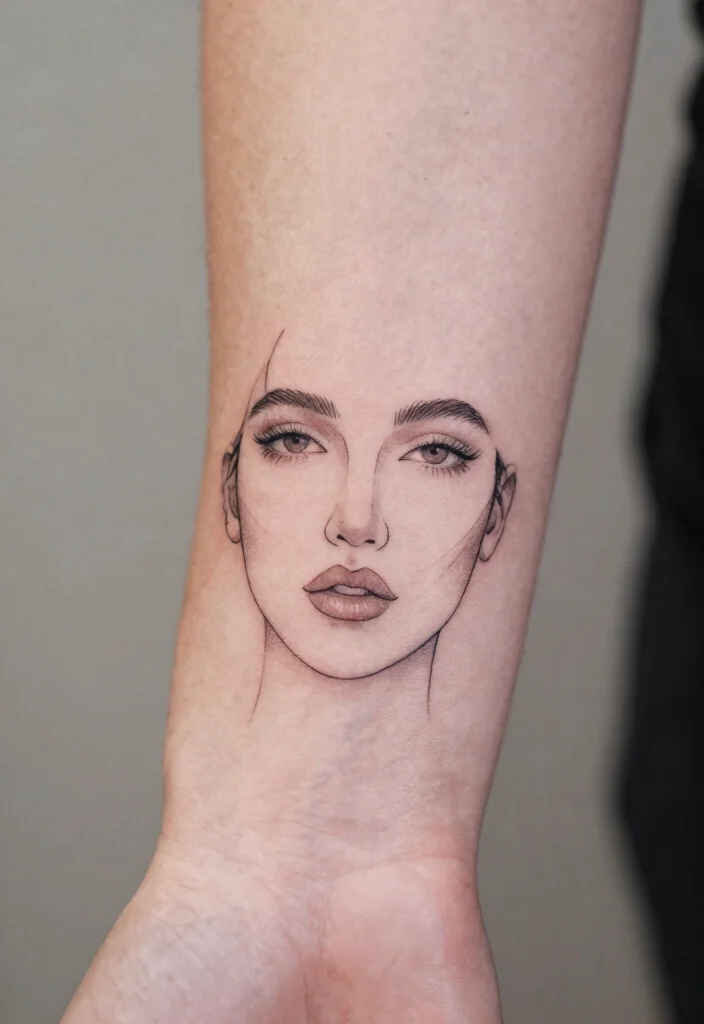 Minimalist portraits offer a unique way to express admiration for someone special with a simple yet meaningful design. These tattoos typically consist of basic lines and shapes that capture the essence of a person’s face or silhouette. They symbolize closeness and significant relationships in life.