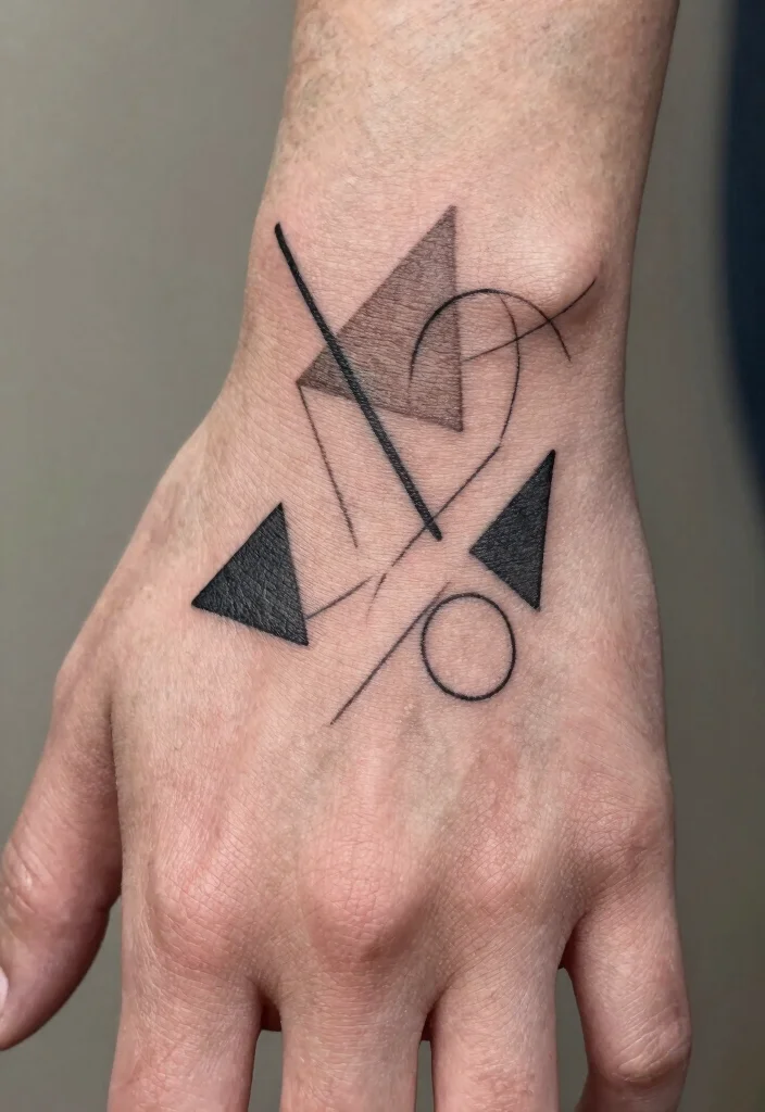 Geometric tattoos offer endless possibilities; you can choose simple shapes or intricate patterns that flow with the contours of your hand. Black ink gives a classic look, while adding colors can infuse your design with personality.