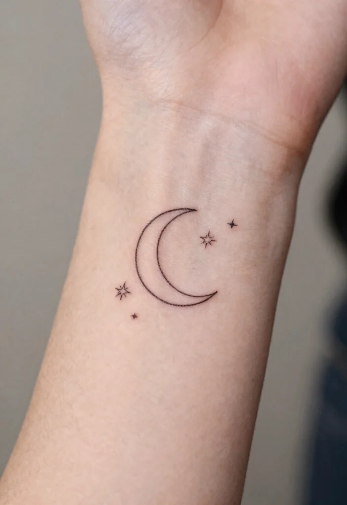 Minimalist versions often feature simple outlines, making them perfect for those who appreciate understated elegance. Many choose these tattoos for their fascination with the night sky or astrology.