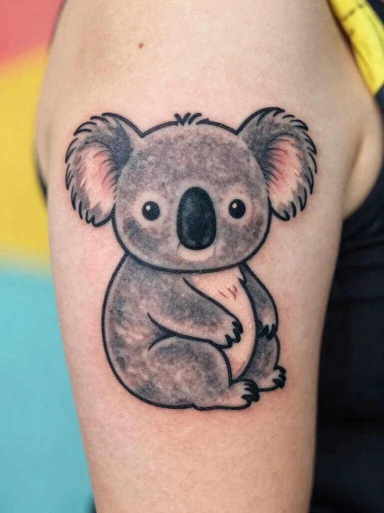 A playful koala tattoo embodies cuteness and affection, making it a charming choice for nature enthusiasts. Koalas symbolize calmness, adding a layer of meaning to this whimsical design.