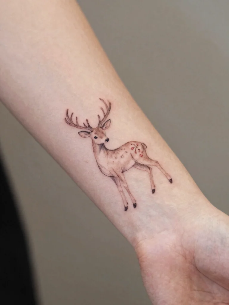 A dainty deer tattoo can serve as a beautiful reminder of your connection to nature’s gentler aspects.