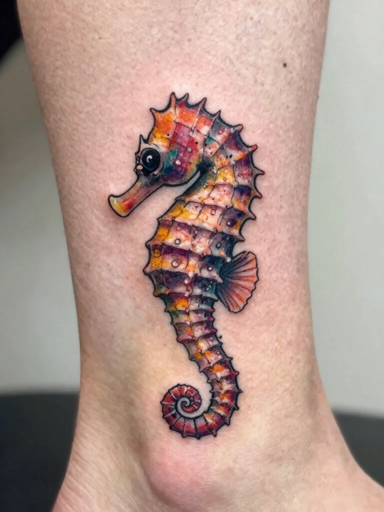 Seahorse tattoos can be placed on the ankle, foot, or behind the ear, allowing for a fun yet discreet design. Many choose to add coral or seaweed to enhance the underwater theme.