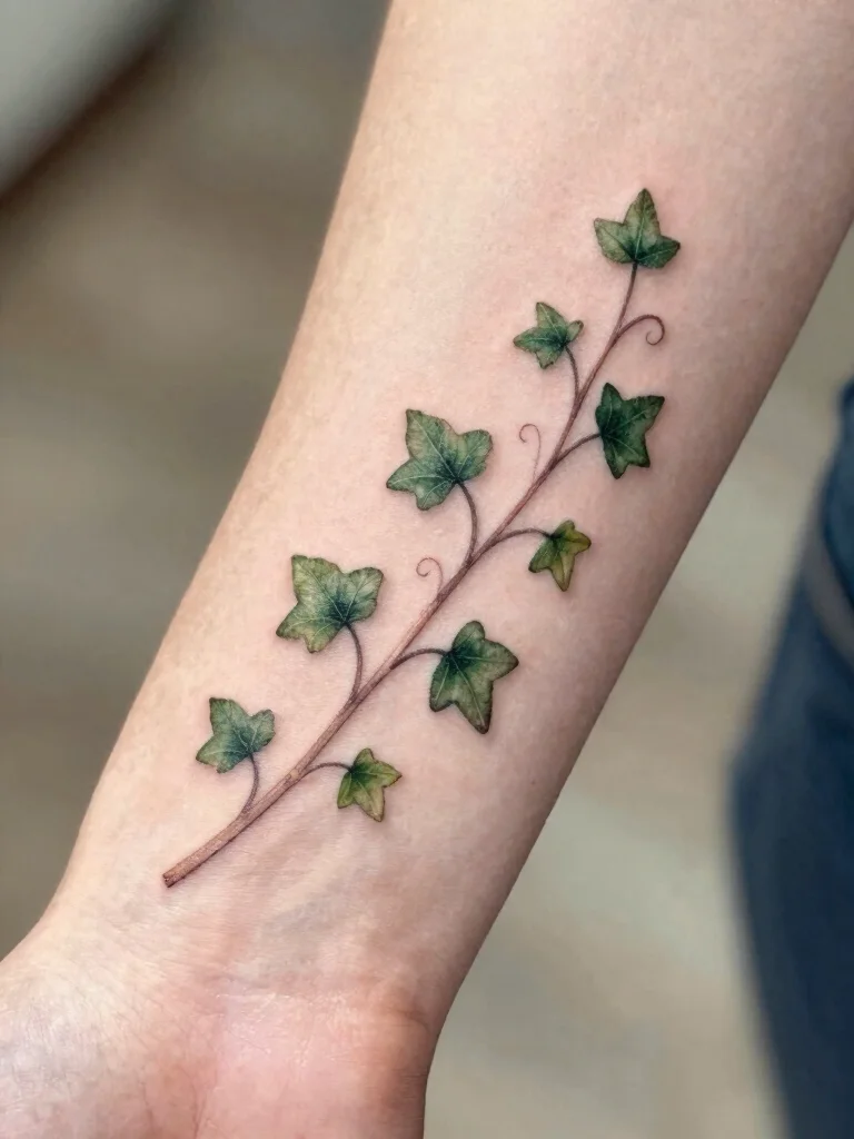 These tattoos work wonderfully in various placements, such as the wrist, side, or behind the ear, giving you flexibility in design. Consider these tips for your ivy tattoo: