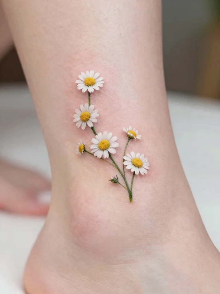 Cute small tattoos, like a daisy chain, spread happiness and innocence with just a few tiny blooms. Keep the color minimal to let white petals pop, and choose a placement—wrist or ankle—that fits your style and friendship story.