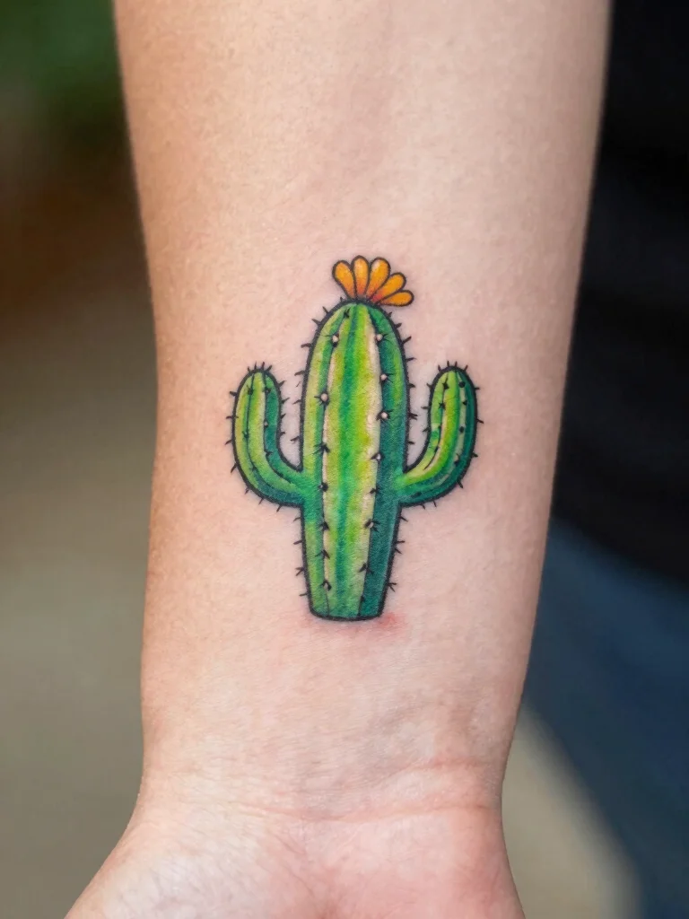 Cactus tattoos are fun and trendy, symbolizing strength and endurance. A tiny cactus tattoo playfully represents resilience, making it perfect for those who embrace life’s challenges.