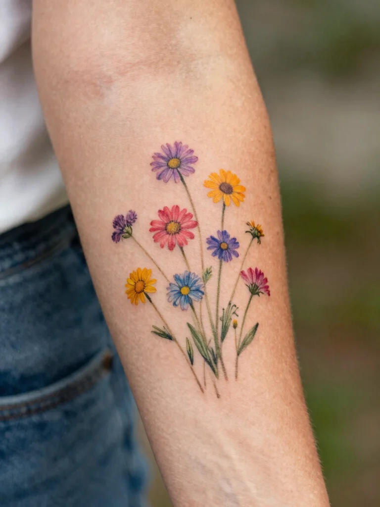 You can personalize these tattoos by choosing flowers that resonate with you, or even adding small bees or butterflies for a playful touch. Consider these aspects for your wildflower tattoo: