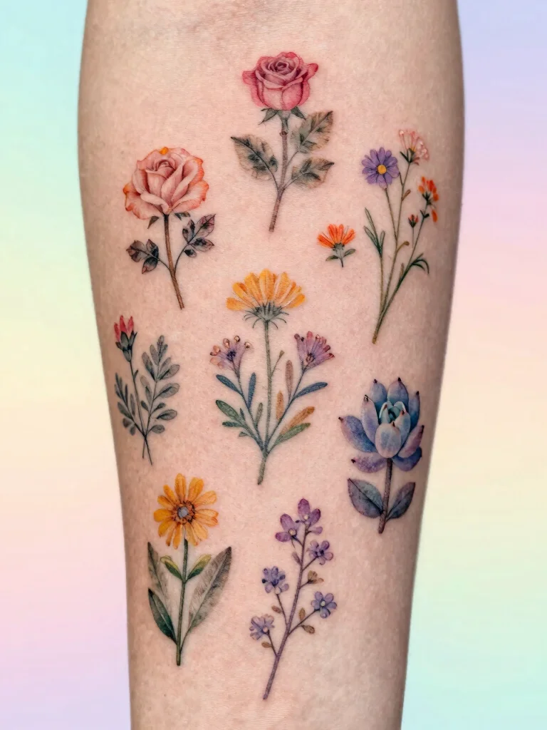 These tattoos can be designed as a single flower or in small clusters, perfect for those seeking a splash of color. Here are some tips to make it shine: