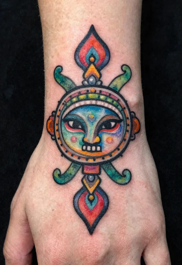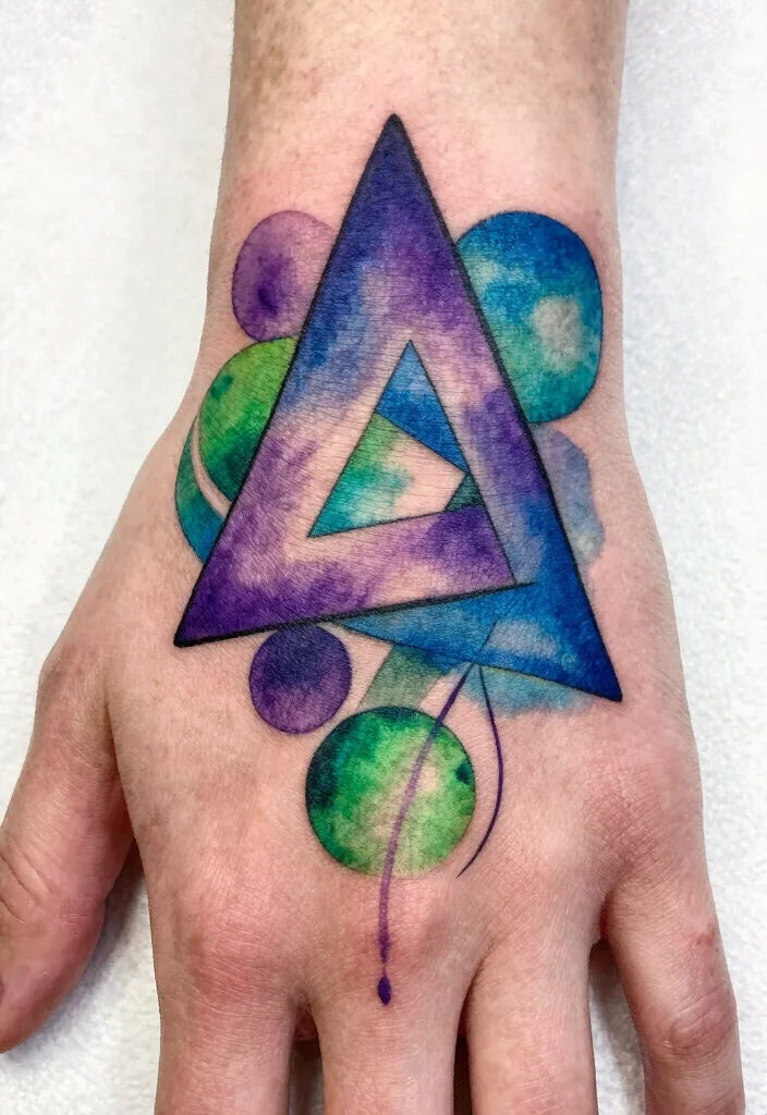 Creating a tattoo filled with personal symbols can be incredibly meaningful. These can range from initials to shapes that hold special significance for you. Utilizing watercolor techniques can make these symbols vibrant and eye-catching, allowing them to shine on your hand.