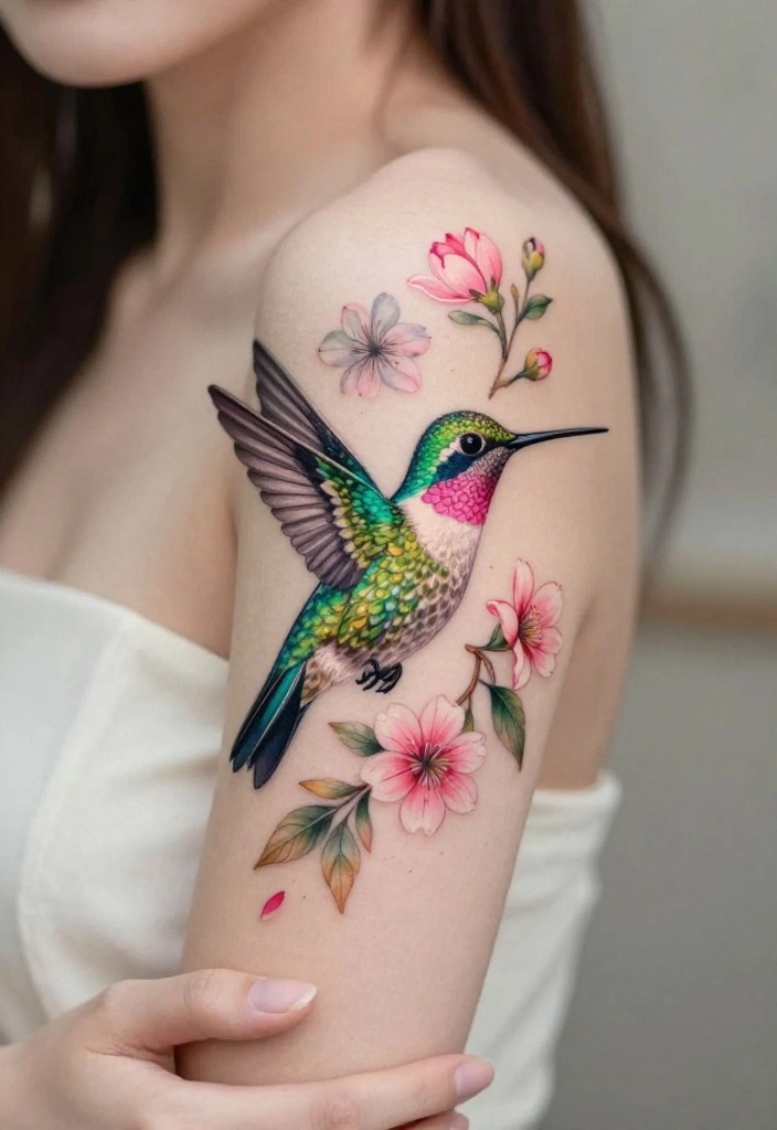 A hummingbird tattoo adds a whimsical touch and serves as a reminder to embrace joy in everyday life.