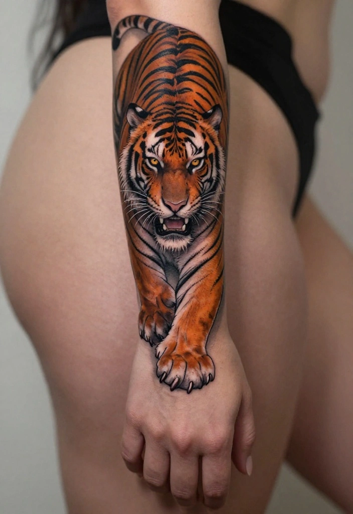 A tiger tattoo is a bold statement that symbolizes your personal power and resilience.