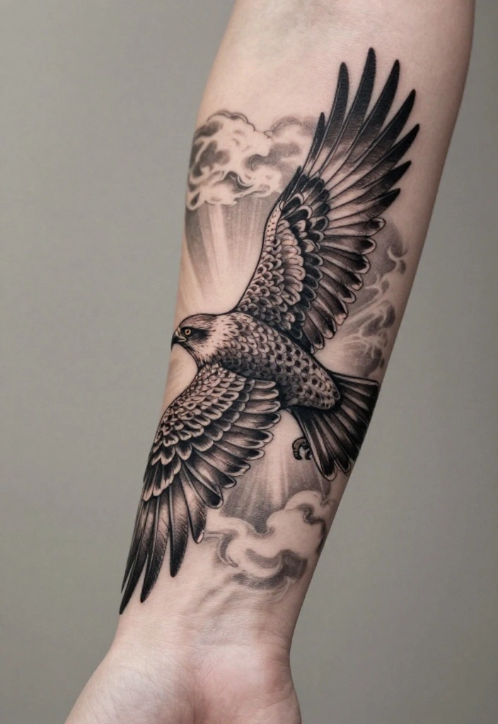 Consider how a falcon tattoo can inspire you to stay focused on your goals while celebrating your ambition. Pairing it with clouds or sun rays adds depth to the design.