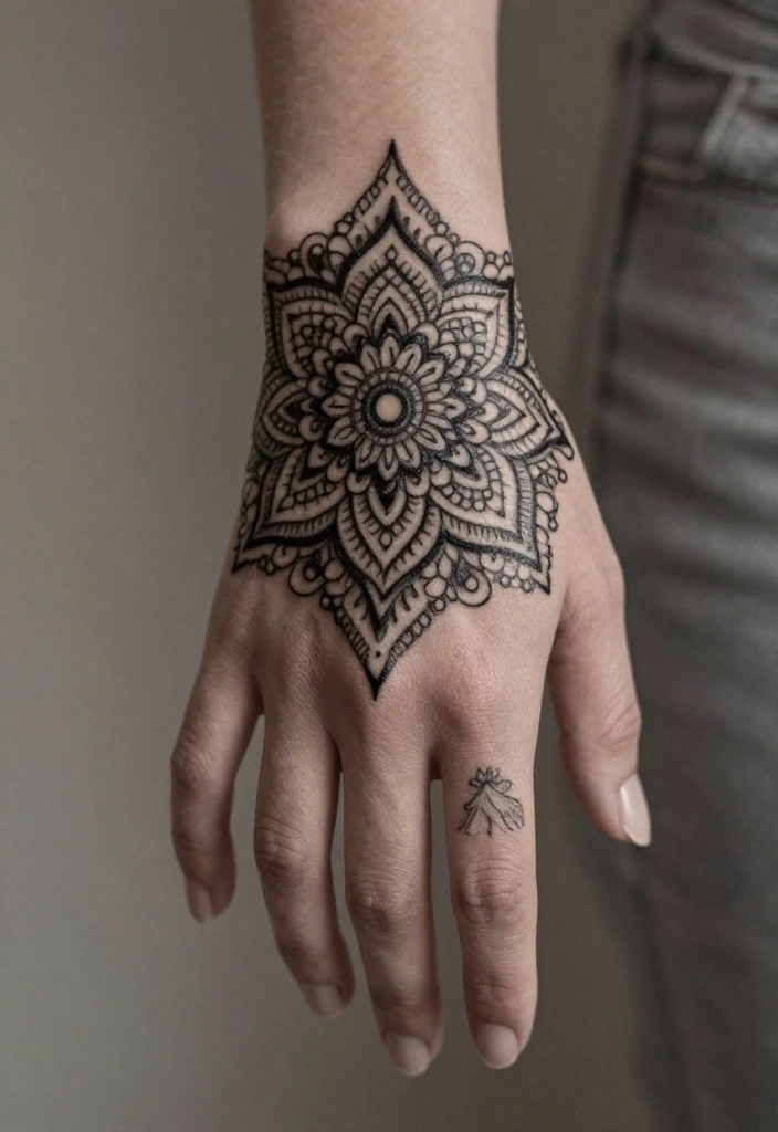 Mandalas can enhance the beauty of a hand tattoo while providing a sense of tranquility and connection.