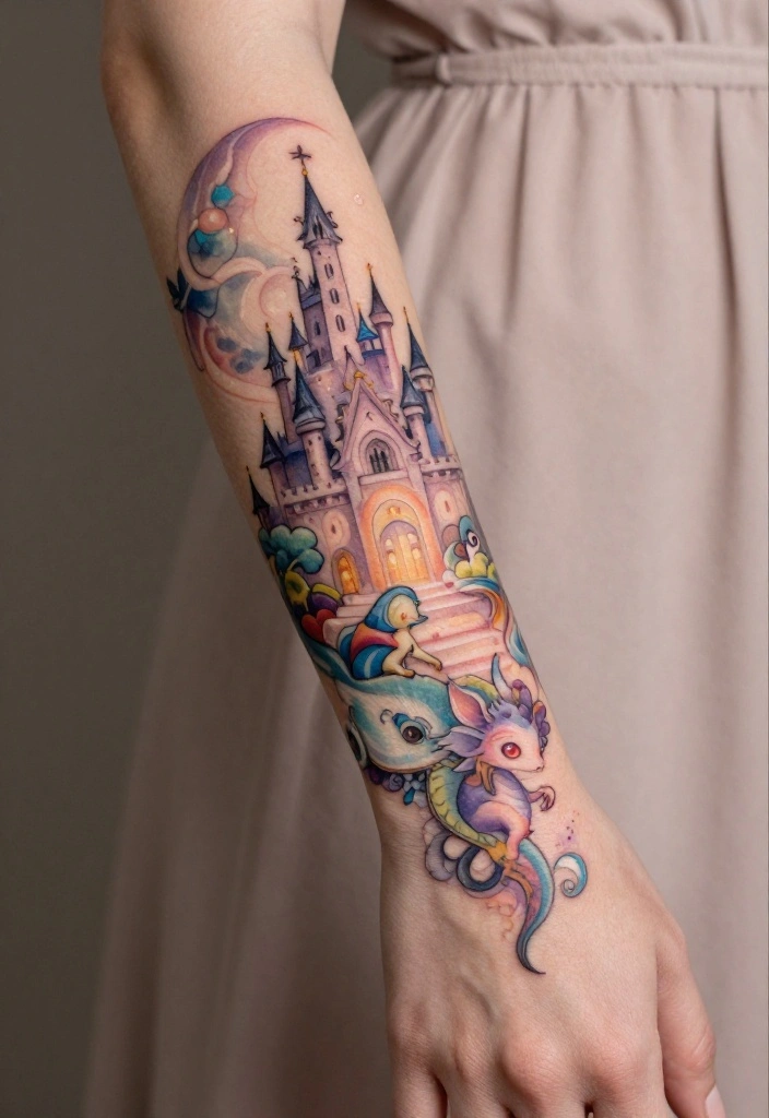 A fairytale tattoo adds a touch of magic, celebrating the wonder of imagination and the stories that shape us.