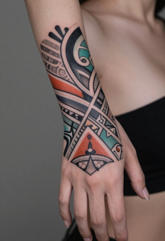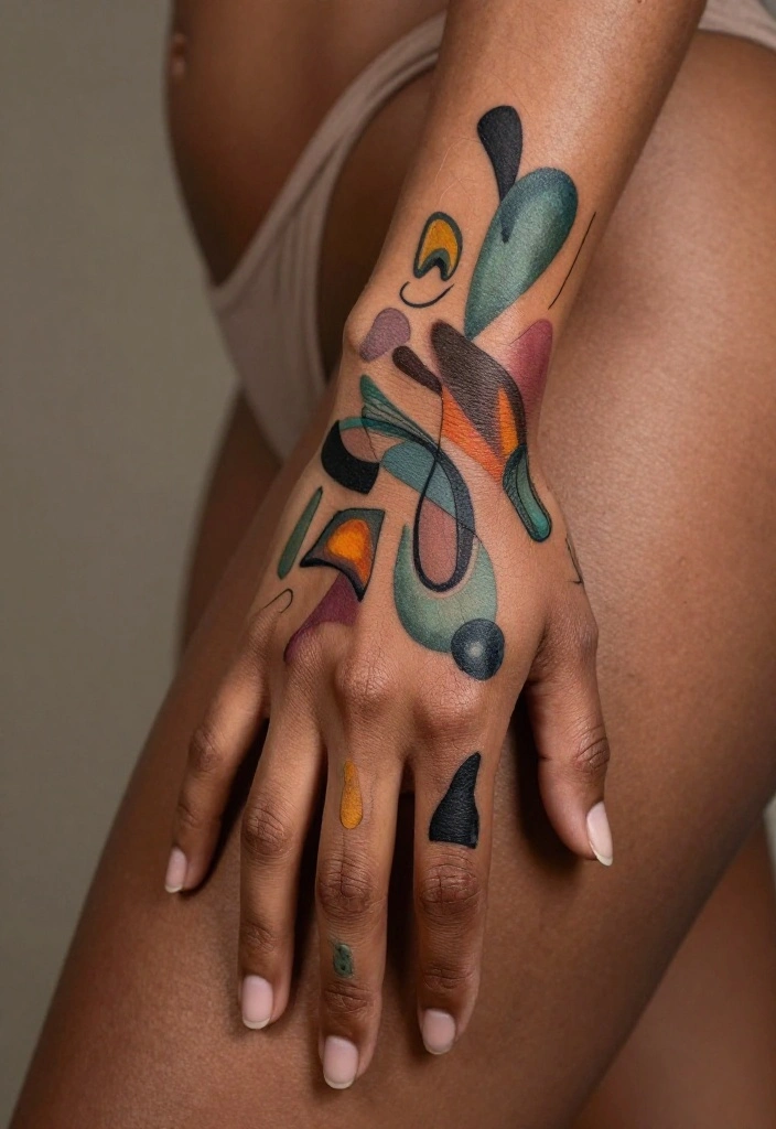 Abstract tattoos offer a modern twist on traditional irezumi, focusing on shapes, lines, and colors rather than specific imagery. Women seeking to express their individuality often choose abstract designs, allowing for personal interpretation and creativity. These tattoos can create stunning visuals on the hand, combining various elements into a cohesive work of art.