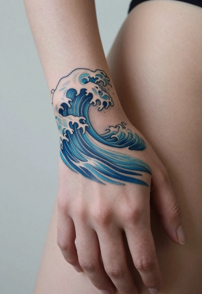 Fun fact: Wave patterns in Japanese hand tattoos often flow around the wrist in 6–8 inches of motion, symbolizing life’s ebb and flow. Pairing them with koi can amplify symbolism and tell your personal journey with flowing lines.