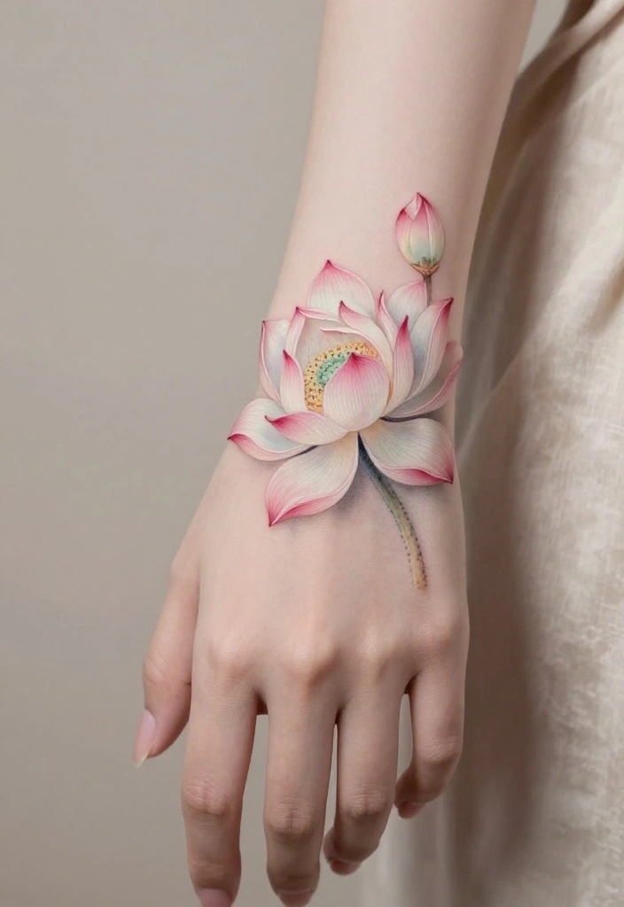 A lotus tattoo serves as a beautiful reminder of your resilience and personal transformation.