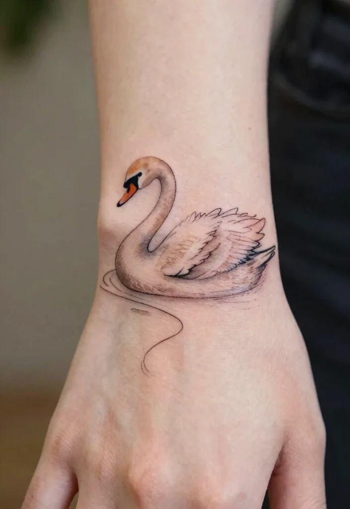 The swan symbolizes grace and love. A small swan on your hand can represent a deep connection to elegance and your own beauty. Minimalist swan tattoos are often depicted in soft lines and curvy shapes. They are perfect for conveying a romantic message or simply celebrating your own grace. This tattoo is a beautiful choice for anyone looking for a creative and elegant way to express their personality.