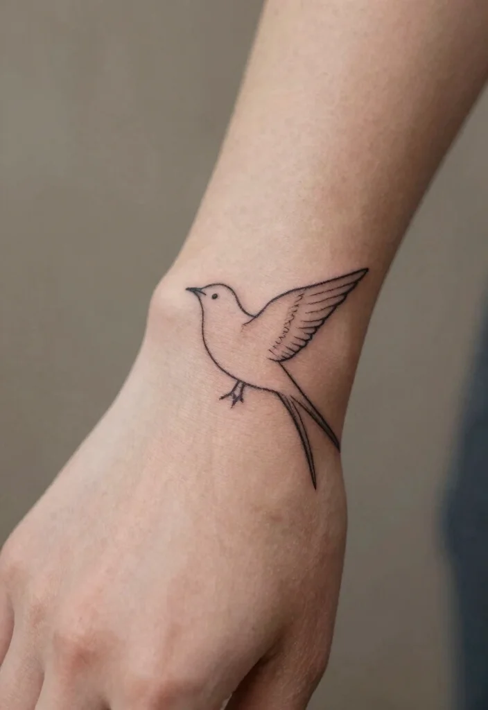 Birds often symbolize freedom and individuality. A small bird on your hand can inspire and express a longing for adventure. These tattoos come in many forms, from simple silhouettes to detailed feather designs. Minimalist bird tattoos are perfect for anyone wishing to convey such a message with a subtle and fine design. They also easily combine with other tattoos, creating a harmonious narrative.