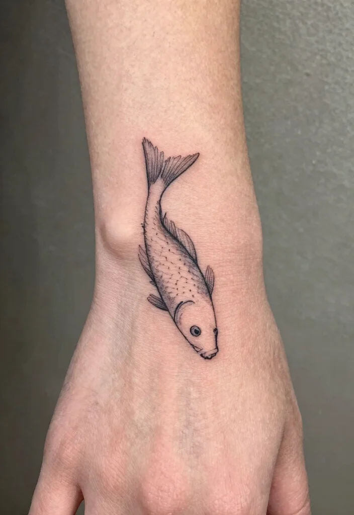 Fish often symbolize adaptability and flow. A small fish tattoo on your hand can subtly yet expressively enhance your style. Minimalist fish tattoos come in various shapes, from simple lines to abstract designs. If you have a connection to water or nature, this is an excellent motif. The elegance and flexibility of these designs make them especially attractive and versatile.