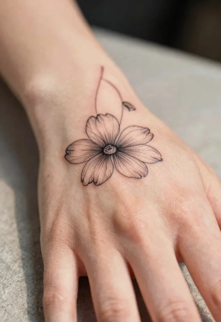 Flower tattoos are timeless and versatile. A small, minimalist flower pattern on your hand can symbolize femininity and delicacy. These designs are often crafted with fine lines and simple shapes, making them particularly elegant. A delicate flower tattoo can also hold personal significance, perhaps as a tribute to a loved one or a special moment. They add a fresh accent to your look and are a fantastic choice for those wishing to showcase their feminine side.