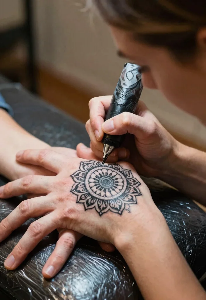 Finding the right tattoo artist is crucial. Look for someone who specializes in mandala art and has a portfolio that resonates with your vision. Schedule a consultation to discuss your ideas and ask questions about their techniques. A skilled artist can help bring your vision to life and ensure the design fits your hand perfectly.