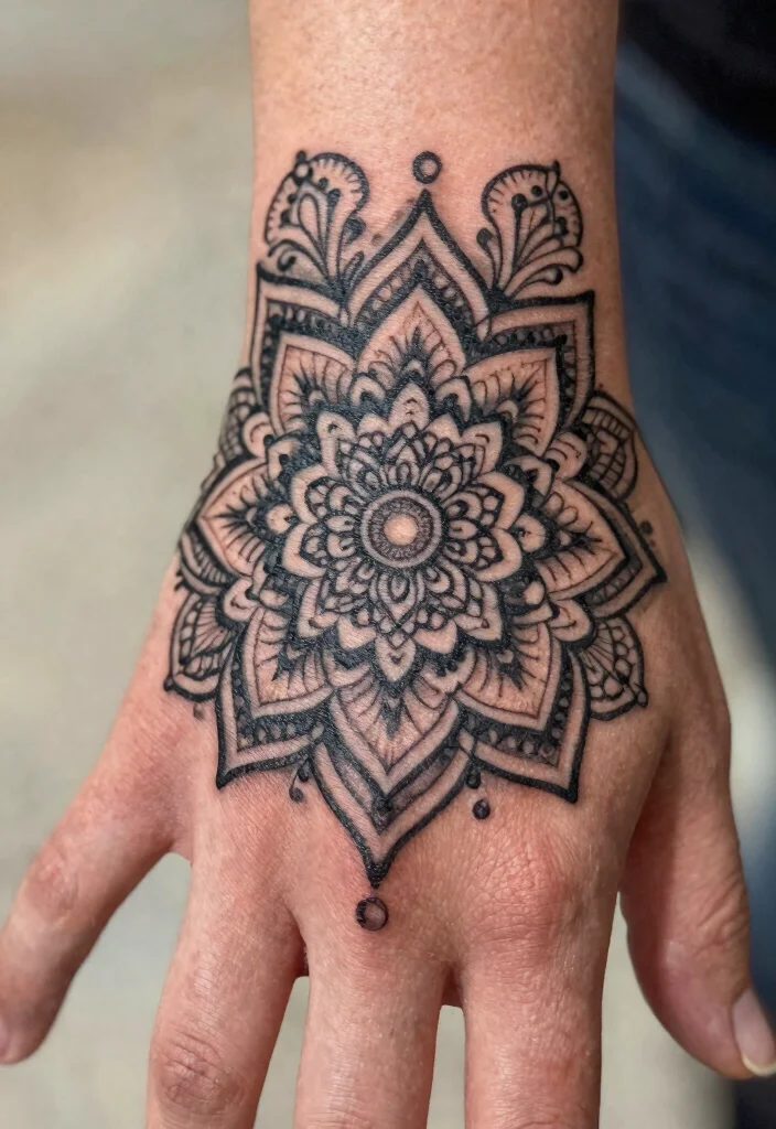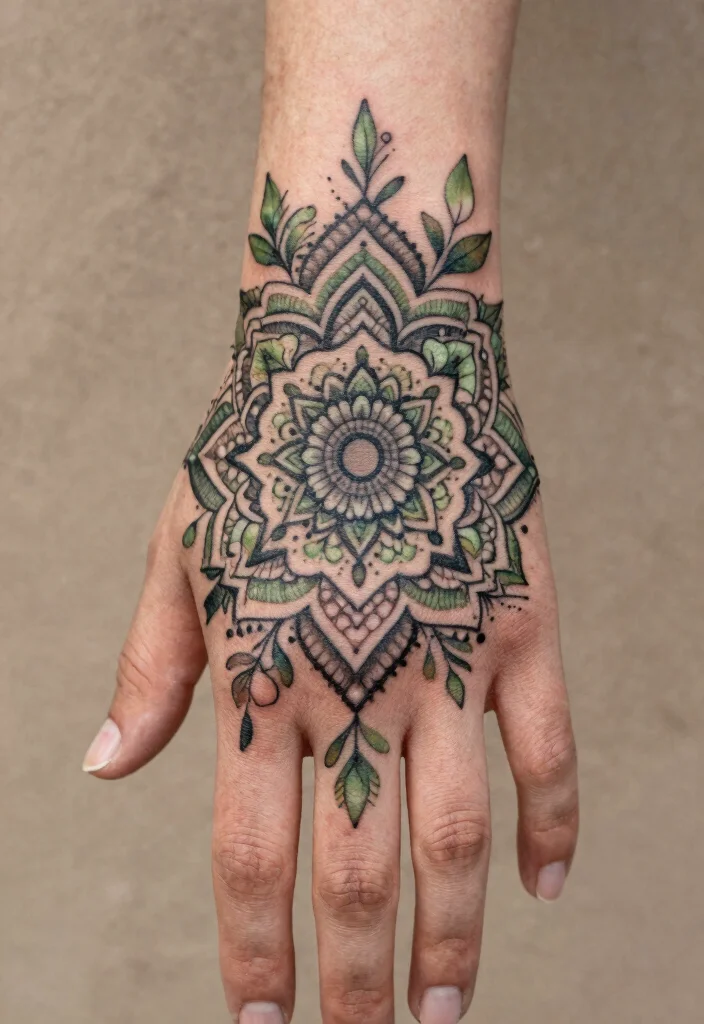 Hand tattoos make a bold statement, and mandalas are no exception. The placement of your tattoo significantly impacts its meaning and visibility. A mandala on your hand can symbolize a commitment to mindfulness and self-awareness in daily interactions.