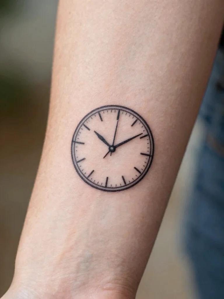 Clock tattoos symbolize time, memories, and significant life moments. Designed in a small minimalist format, these tattoos can represent important events while maintaining a stylish look.
