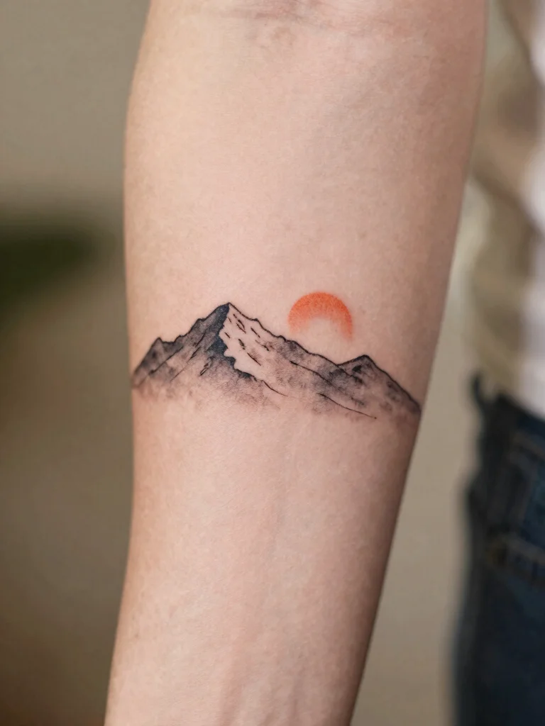 By using simple lines and dots, these tattoos can convey vast landscapes in a small space, making them perfect for areas like your forearm or thigh. They not only look great but also tell a story of adventure and tranquility.