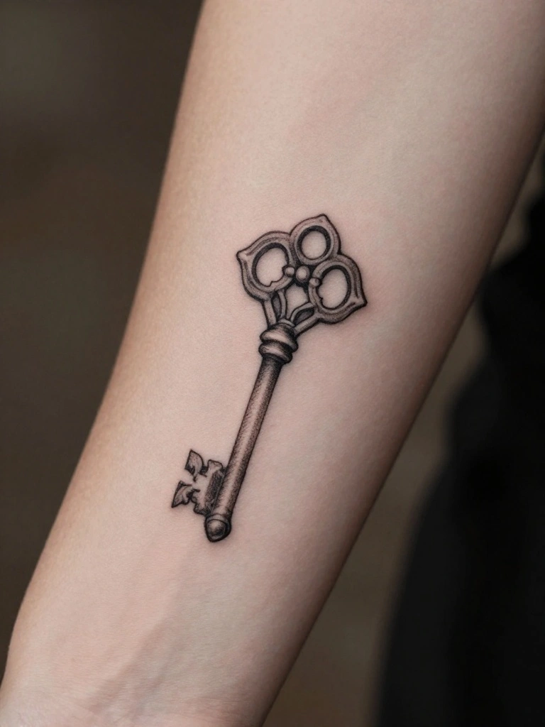A small key tattoo symbolizes unlocking potential and new opportunities in life. This design can be simple or embellished with flowers and intricate details, serving as a reminder of the keys to your happiness. It’s a great way to express your desire for growth and freedom. Consider how you want your key tattoo to look, whether in a vintage style or a modern design. Ideal placements include the wrist, behind the ear, or at the base of the arm for visibility. This tattoo can also be paired with other symbolic designs for a more profound narrative. To embark on your small key tattoo journey, think about: