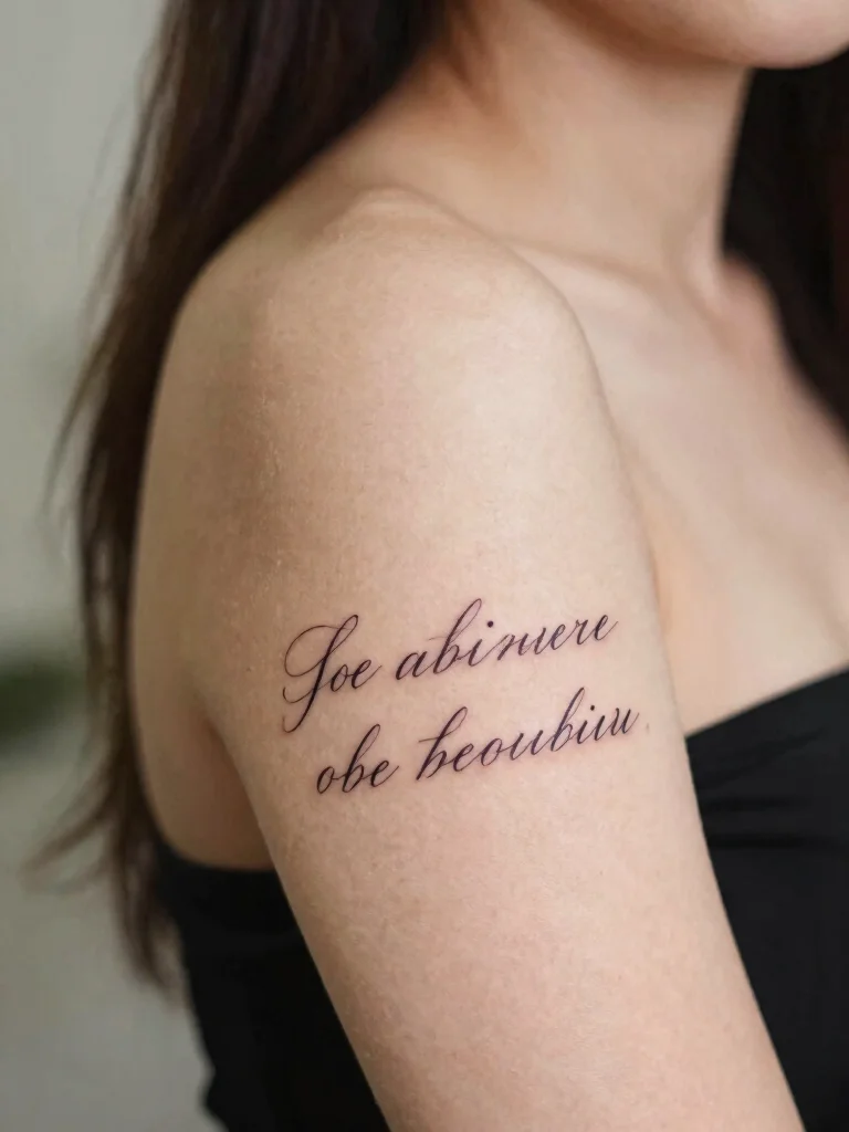 Small arm tattoos are daily mantras you can carry with you. Keep the phrase short, the font clean, and place it where you’ll see it—the inner arm or wrist—so your personal mantra fuels your day whenever you glance down.
