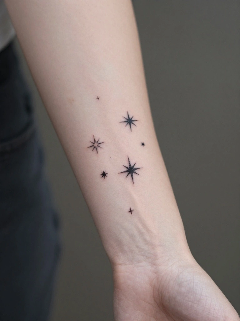 A star-themed tattoo brings a sense of magic and wonder to your body art. Whether you choose a single star or a constellation, this design captures the essence of dreaming big and embracing your aspirations. The versatility of this tattoo allows you to create a piece that holds personal significance. Think about which constellation or star pattern speaks to you. Ideal placements include the wrist or just above the elbow, where it can shine brightly. You can also combine it with other celestial designs for a more elaborate look. To embark on your starry sky tattoo journey, consider: