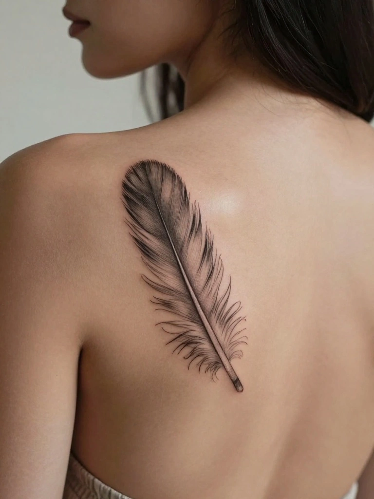 Feather tattoos symbolize freedom and lightness, making them a graceful choice for body art. A small, delicate feather tattoo can add elegance to your back without being too flashy. These designs can incorporate fine lines or soft shading, capturing the natural beauty of feathers.
