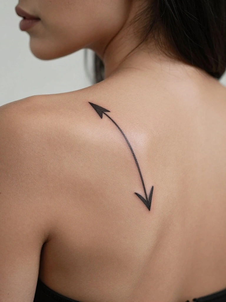 Fun fact: simple arrows are a minimalist crowd-pleaser for small back tattoos. They work in horizontal or vertical layouts, keeping lines clean while meaningfully pointing your direction and motivation.