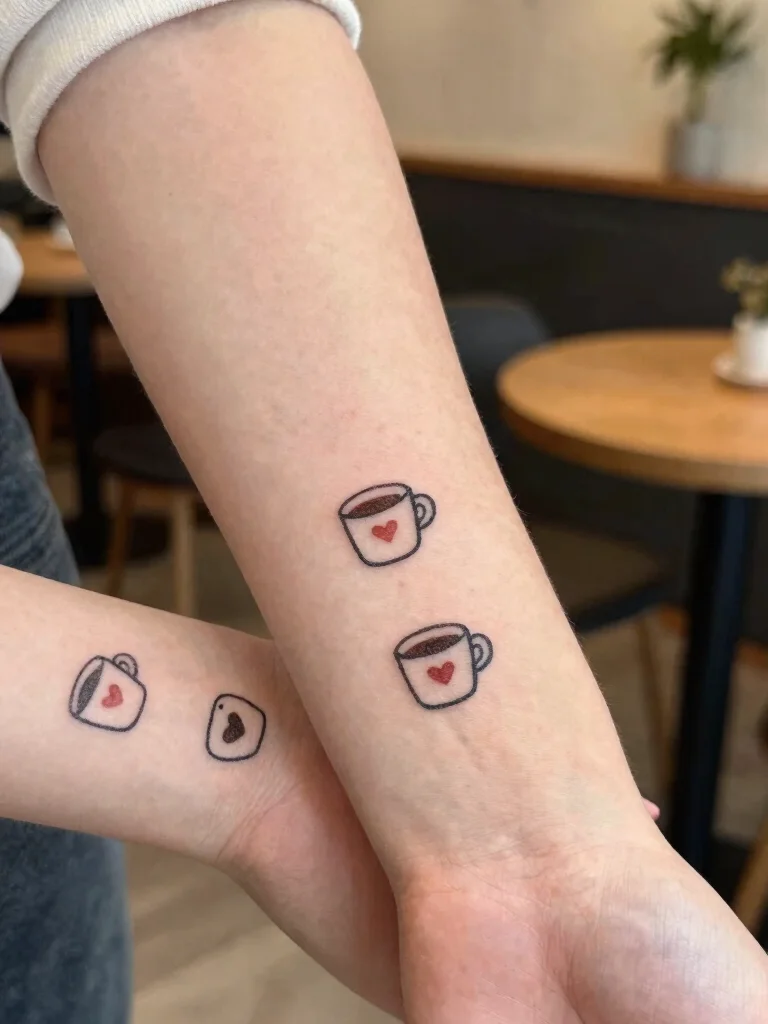 Are you and your partner coffee enthusiasts? Small coffee cup tattoos are a fun way to celebrate your relationship. These designs can be minimalist, showcasing your shared love for coffee and cozy moments together. Placing the cups side by side symbolizes how you complete one another perfectly.