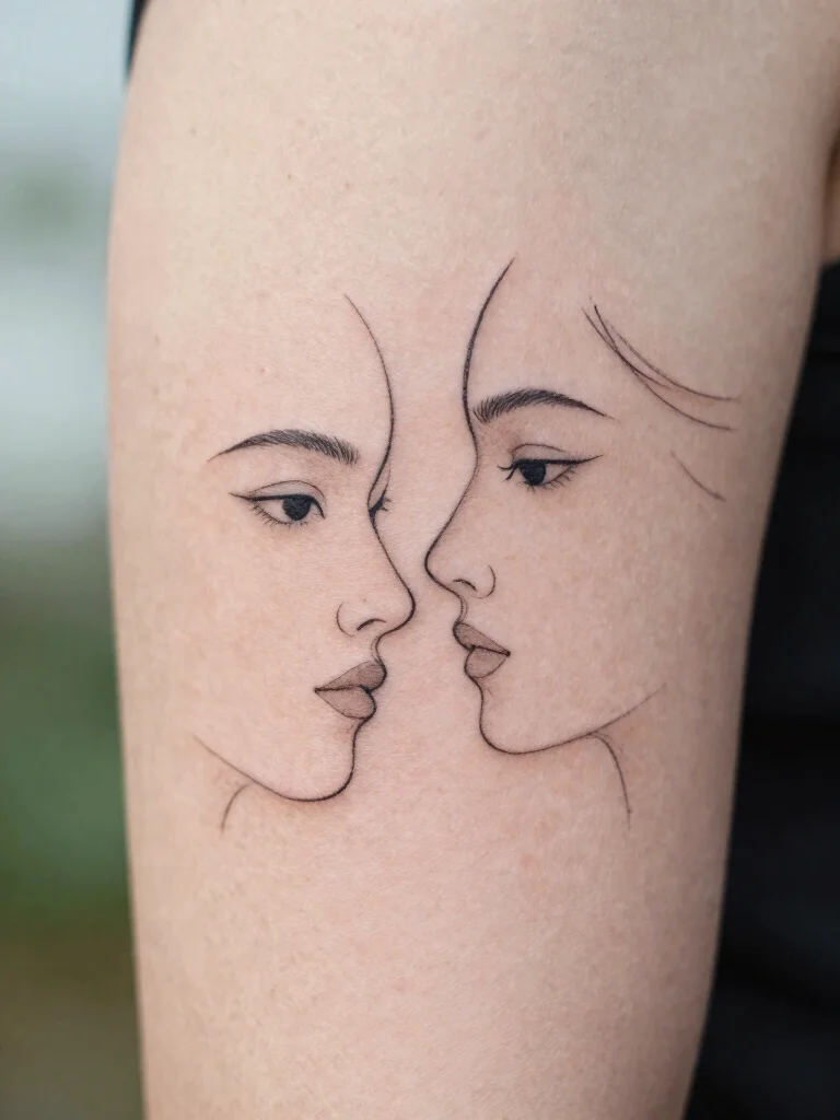 Are you searching for a unique way to represent your connection? Small line art tattoos depicting each other’s faces can perfectly capture the essence of your partner in an artistic form. These designs can range from basic outlines to more detailed sketches, highlighting the beauty of your relationship. Placing them on matching body parts, like inner arms or wrists, adds a personal touch to the tattoos.