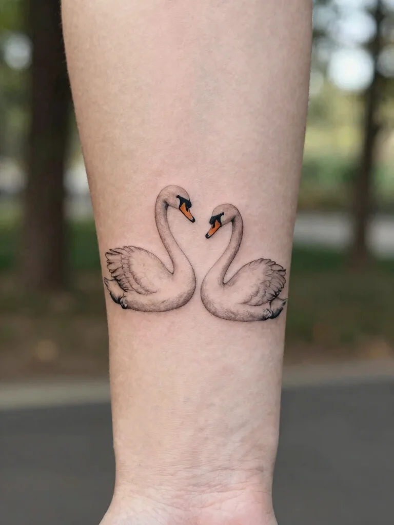 Fun fact: about 28% of couples choosing small couple tattoos pick symbolic animals like swans to signal loyalty and companionship. Keep it minimalist—simple lines with hearts or initials make the meaning pop without clutter.