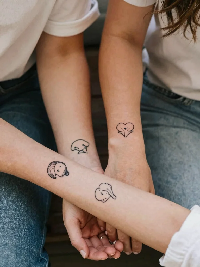 Keep the design simple to maintain a minimalist aesthetic that highlights your bond. You can incorporate elements like hearts or initials within the tattoo for a personal touch. This type of tattoo captures a shared bond and affection, making it a heartfelt tribute to your love.