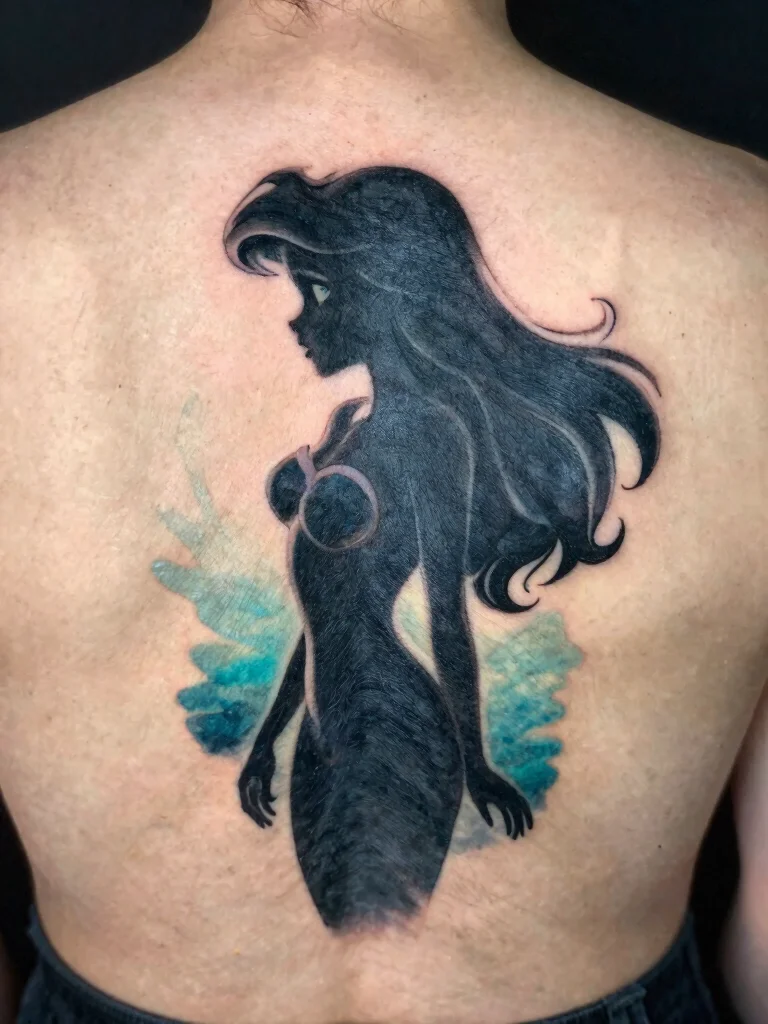 Ariel’s silhouette is a popular tattoo choice, embodying feelings of freedom and adventure. This minimalist design captures the essence of exploration beneath the sea, making it a great choice for those who love the ocean.