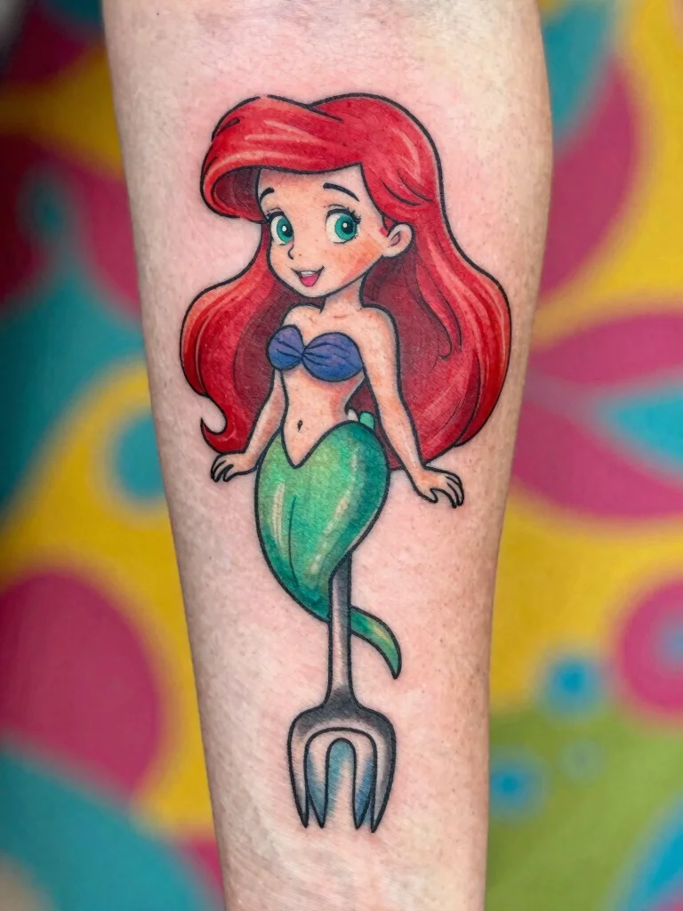 For fans of The Little Mermaid, Ariel’s ‘dinglehopper’ (fork) is a quirky and fun tattoo choice. This small design symbolizes creativity and the whimsical nature of imagination, making it perfect for those who love Disney’s magic.