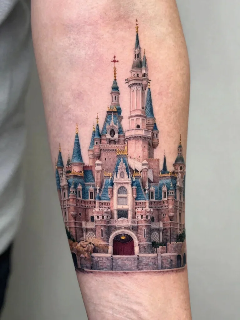 The enchanting castle from Disney parks is a perfect symbol of dreams and magic. A small tattoo of the castle resonates with those who cherish their Disney memories and the adventures that come with them.