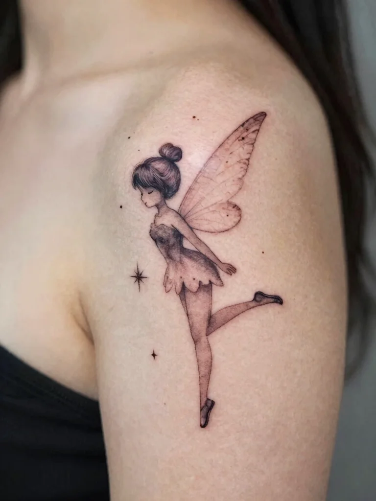 Tinkerbell’s silhouette is a charming tattoo choice that represents magic and femininity. This minimalist design can vary from a simple outline to a more detailed version with delightful sparkles. It’s a great way to keep the spirit of fairytales alive on your skin.