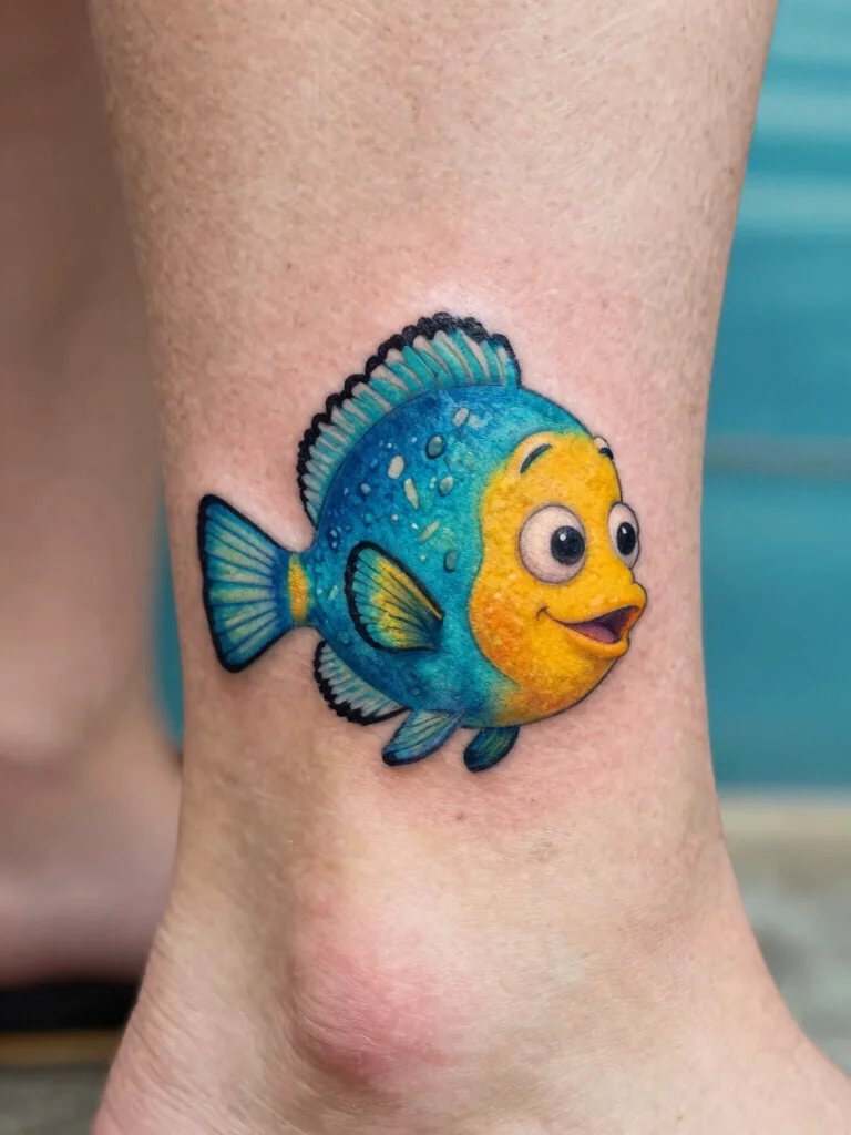 Flounder, Ariel’s loyal companion, makes for a delightful small tattoo that symbolizes friendship and adventure. His bright colors and cheerful expression are sure to bring a smile, making it a charming addition to any tattoo collection.