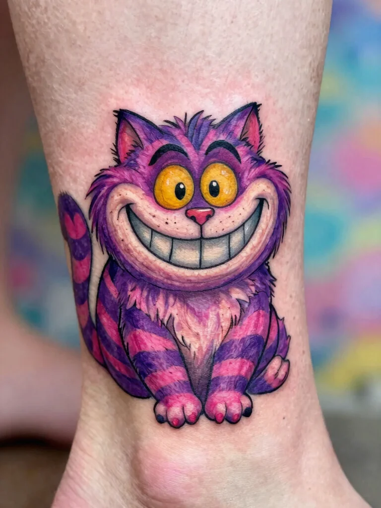 The Cheshire Cat from Alice in Wonderland is known for his playful grin and whimsical nature. A small tattoo of this character represents curiosity and individuality, making it a fun choice for Disney fans.