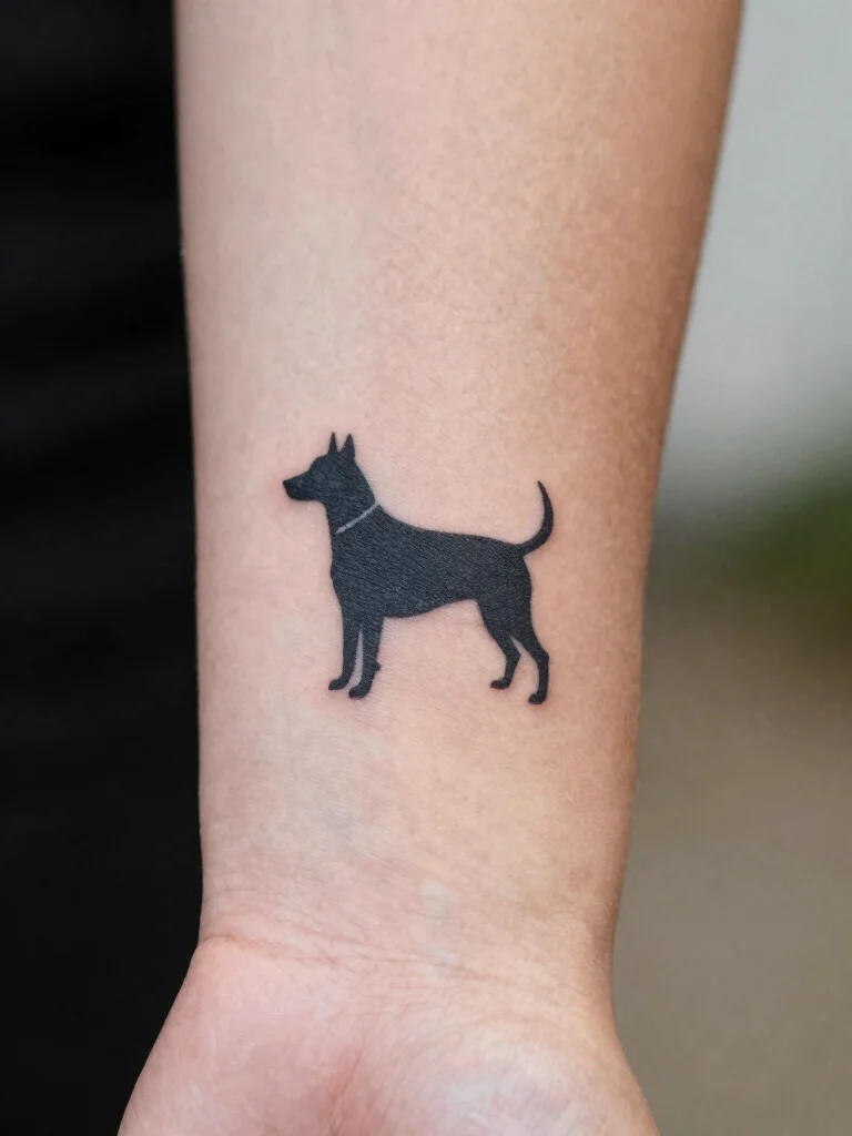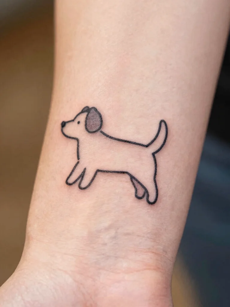 Design options include a clean silhouette of your dog’s profile, a tiny paw print, a single-line portrait, or a heartbeat forming a dog shape. Black ink is the classic cute animal tattoos look, though a touch of color can personalize the piece—just keep it subtle for true minimalist style. Consider breed-inspired shapes or combining elements like a heart or tag for a dog lover tattoos vibe. These ideas offer practical small animal tattoo ideas that stay timeless.