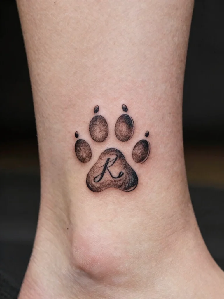 A tiny dog paw print paired with initials creates a personalized tattoo that speaks to your heart. This design immortalizes your furry friend’s presence alongside a reminder of their name or a significant date. The paw print can be stylized creatively, with initials flowing seamlessly alongside it for an artistic touch. This tattoo works beautifully on the back of the shoulder or near the ankle for a delightful surprise.