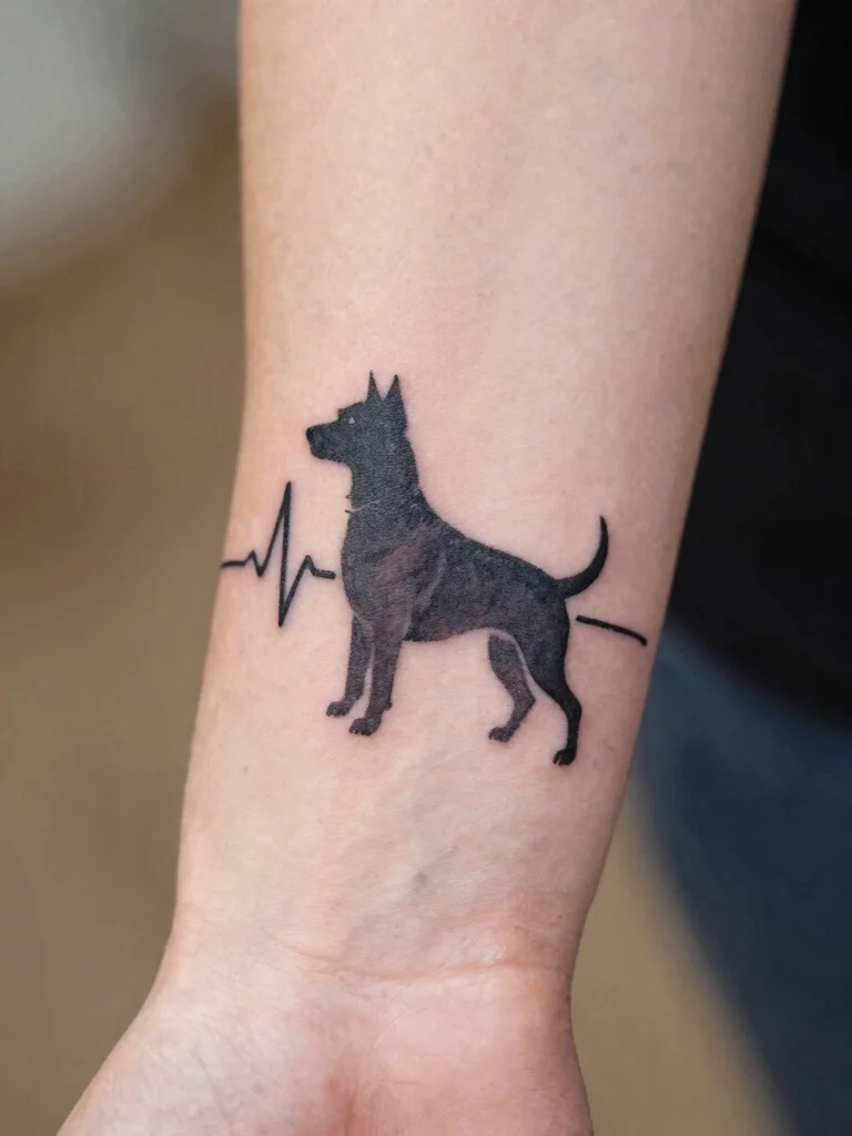 Combining a dog silhouette with a heartbeat line creates a powerful testament to your love for your pet. This design emphasizes that your dog is an essential part of your life. Common placements include wrapping around the wrist or along the ribs, making it a stylish yet meaningful tattoo.