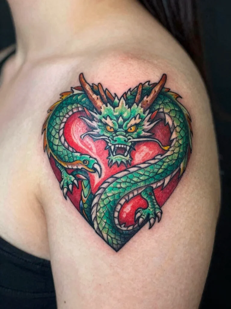 – Tip: Incorporate soft colors to balance the fierce dragon with the gentle heart shape.