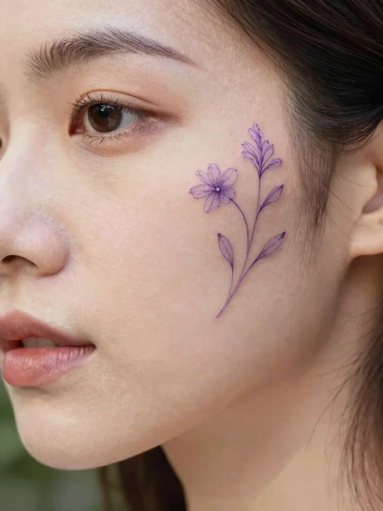 A small rose or lavender tattoo near your temple or cheekbone can add a soft, eye-catching accent to your look.
