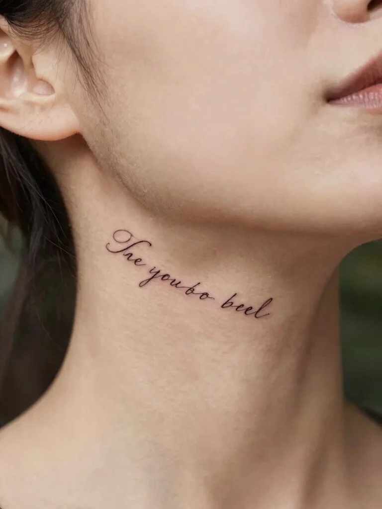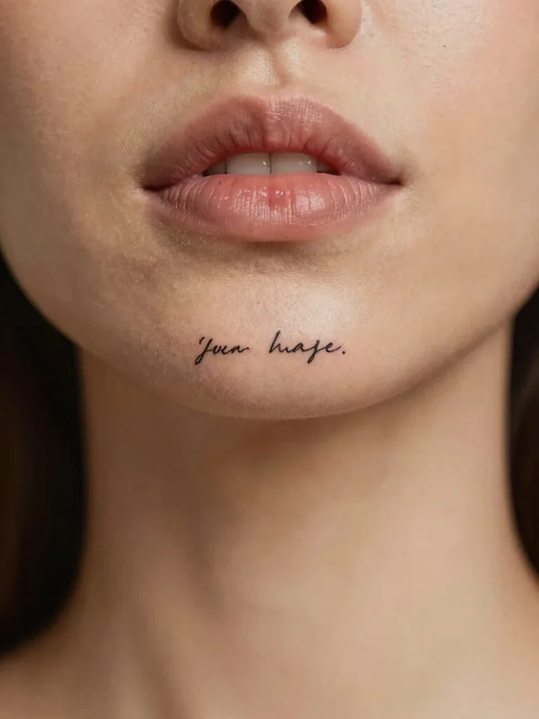 Minimalist word tattoos are elegant and subtle, often placed along the jawline or near the ear.