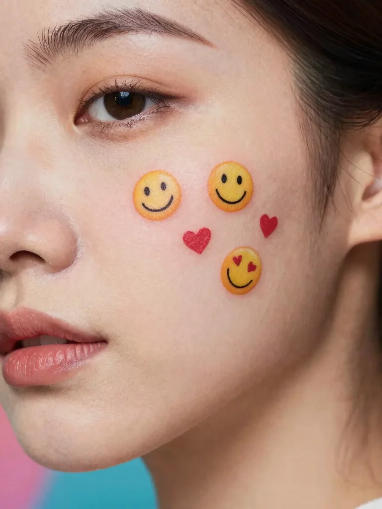 Bring a playful touch to your face tattoos with fun emoji designs.